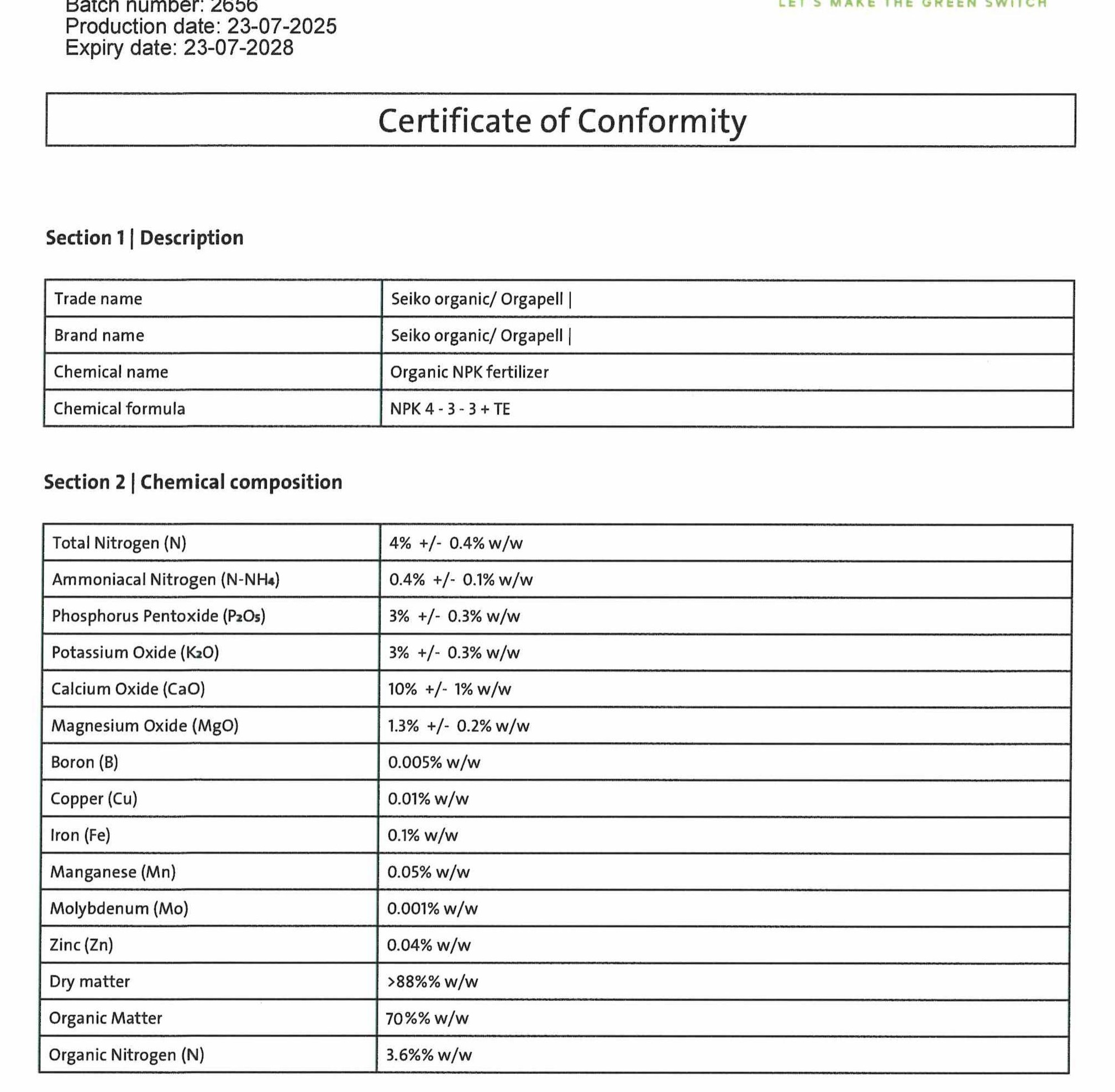 THÀNH PHẦN TRONG CÔNG THỨC SEIKO ORGANIC- PHÂN NỞ HÀ LAN